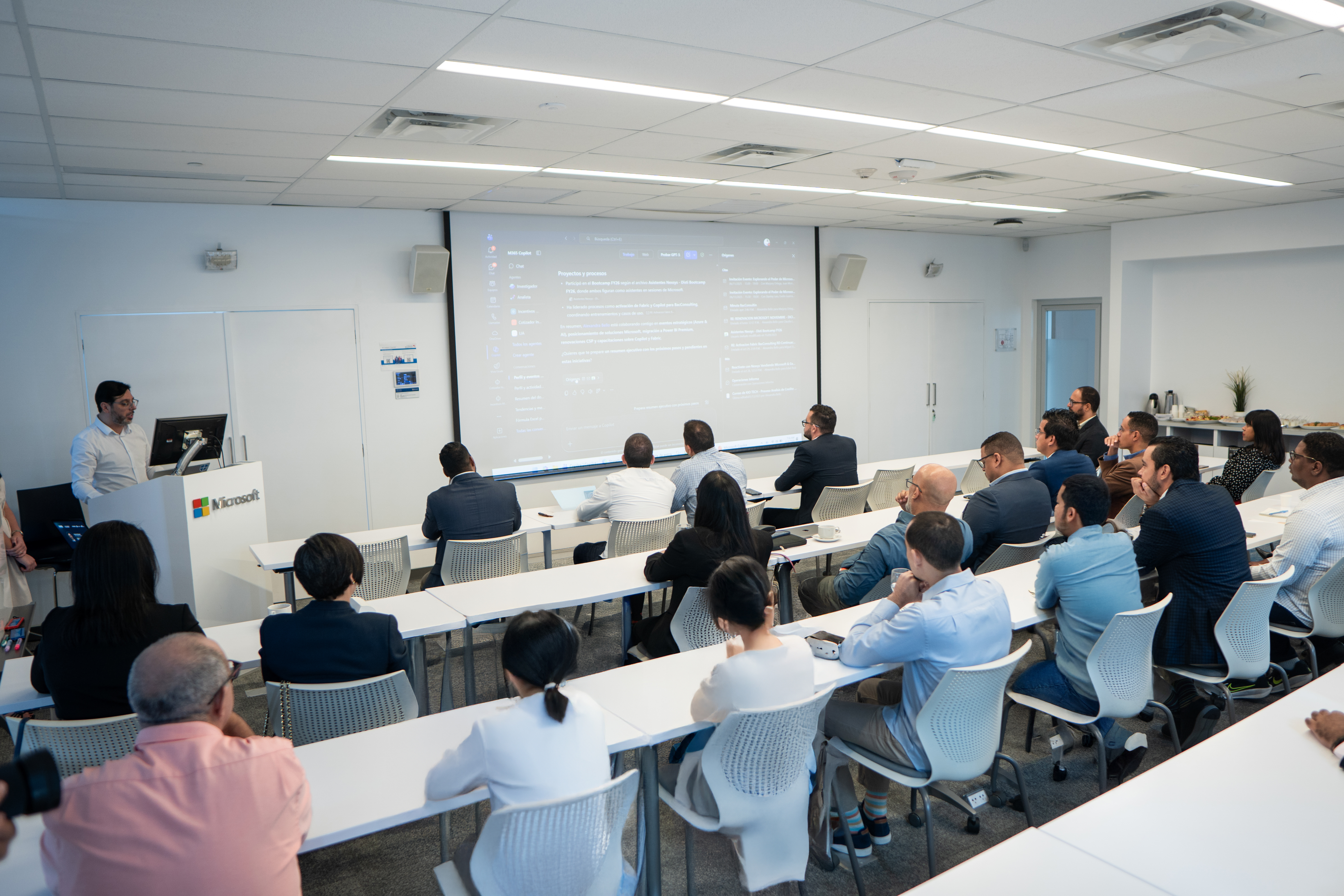 A continuación, Carlos Obando, Gerente Regional de Microsoft para Nexsys, presentó la charla "Copilot y Seguridad en Soluciones Microsoft", donde abordó las innovaciones impulsadas por la inteligencia artificial y las estrategias de seguridad que acompañan la adopción de estas herramientas en el entorno empresarial.